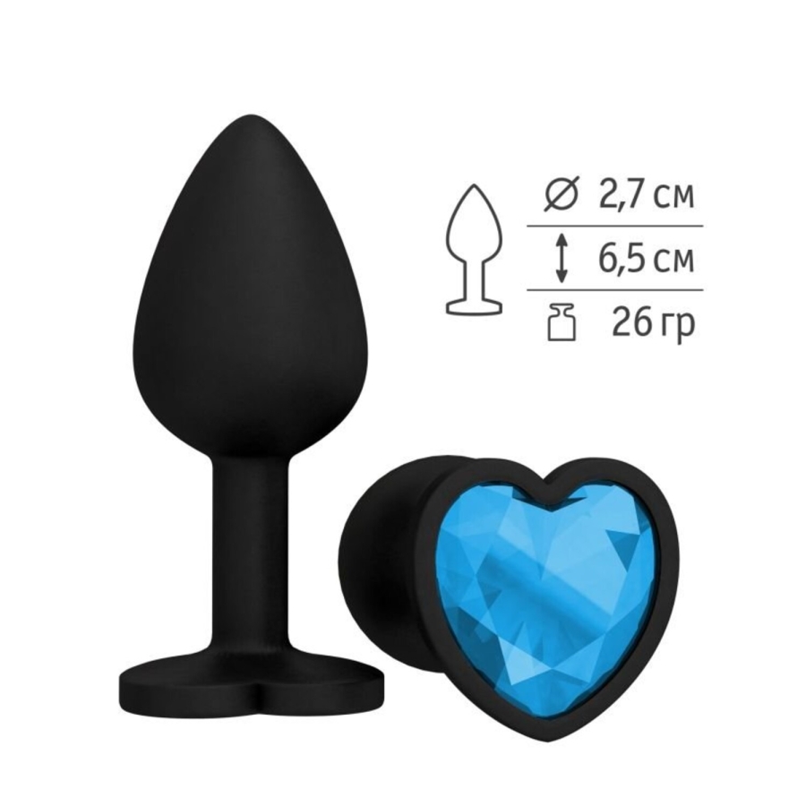 АНАЛЬНАЯ ВТУЛКА СИЛИКОНОВАЯ ЧЕРНАЯ С ГОЛУБЫМ КРИСТАЛЛОМ сердце