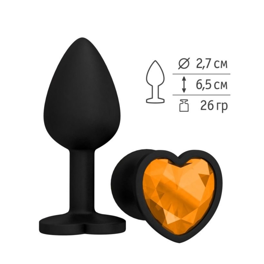 —АНАЛЬНАЯ ВТУЛКА СИЛИКОНОВАЯ ЧЕРНАЯ С ОРАНЖЕВЫМ КРИСТАЛЛОМ сердце