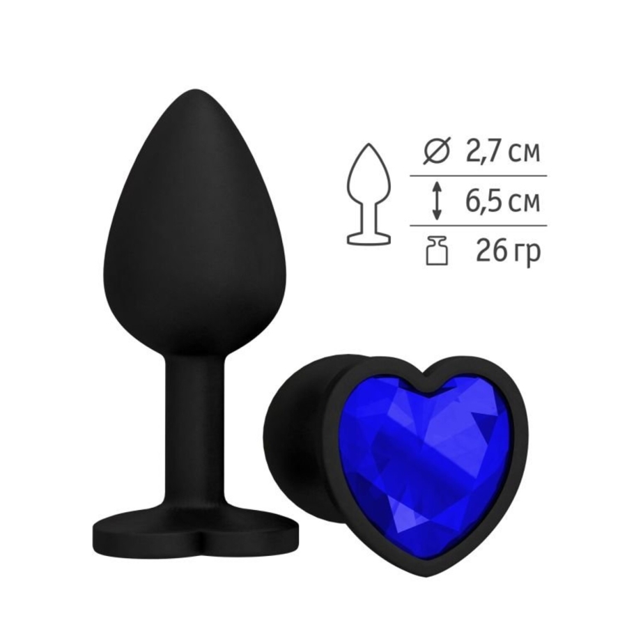 АНАЛЬНАЯ ВТУЛКА СИЛИКОНОВАЯ ЧЕРНАЯ С СИНИМ КРИСТАЛЛОМ сердце