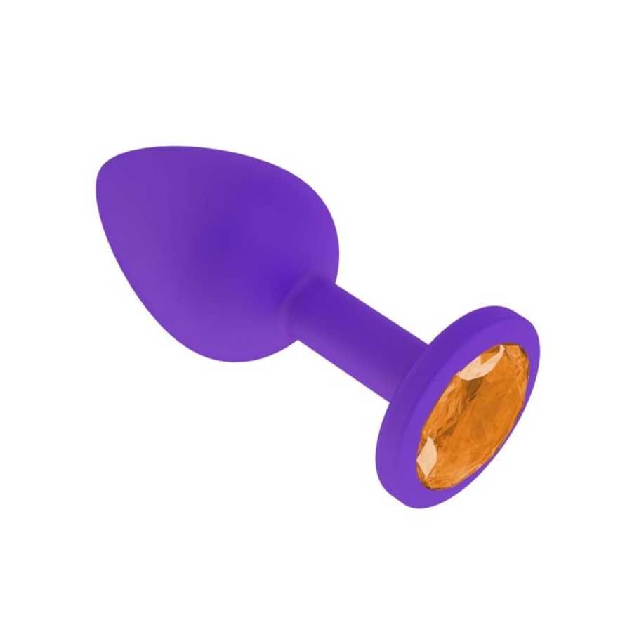 Анальная втулка силиконовая фиолетовая с оранжевым кристаллом маленькая