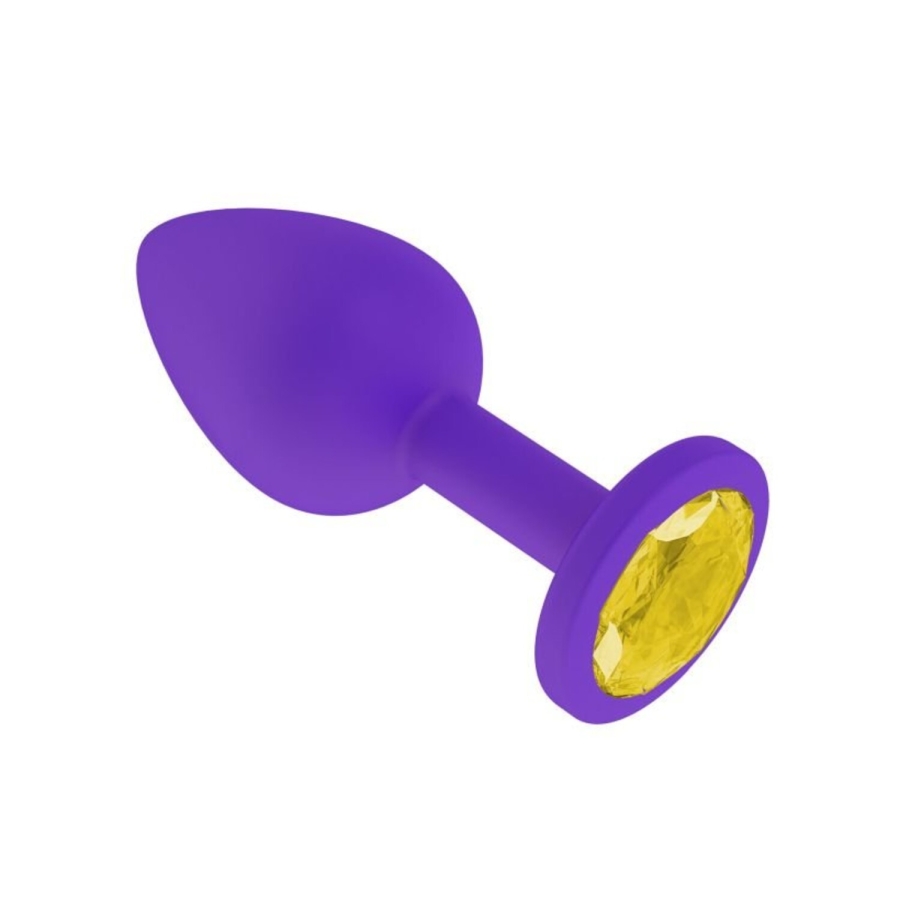Анальная втулка силиконовая фиолетовая с желтым кристаллом маленькая