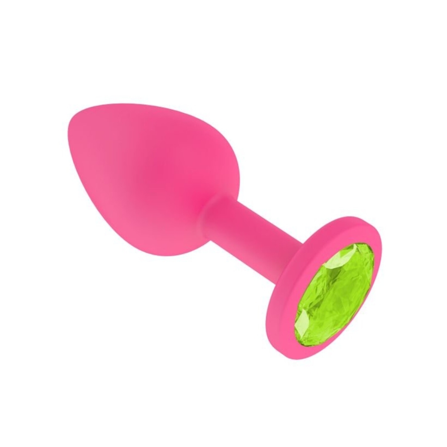 —Анальная втулка силиконовая красная с салатовым кристаллом