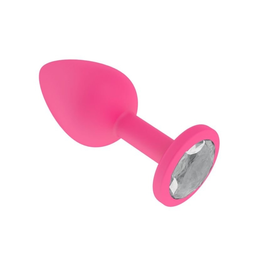 Анальная втулка силиконовая розовая с прозрачным кристаллом маленькая