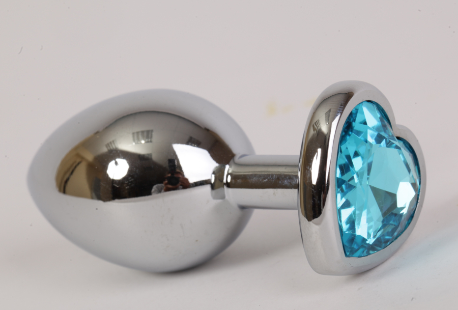 Анальная пробка сердечком с голубым стразом S 7,5 х 2,8 см 47141-MM