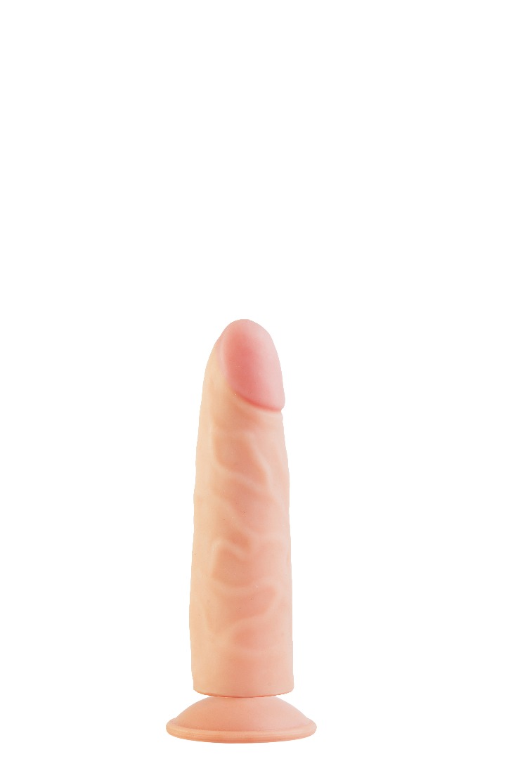 Реалистичный  фаллоимитатор телесного на присоске. . Необычайно приятный, рельефный, выполненный из «Киберкожи» , передающий эффект мягкой реалистичной текстуры кожи, не имеет швов. Общая длина – 19см, рабочая длина-17 см, максимальный диаметр -4.5 см.  Упаковка в виде прозрачной пленки.
