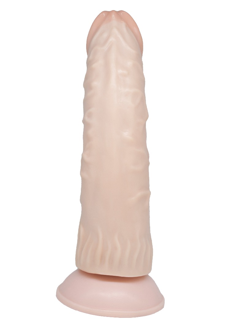 Большой, полужесткий, реалистичный фаллоимитатор телесного цвета на присоске. Имеет форму члена с ярко-выраженной розовой головкой. Необычайно приятный, упругий, рельефный, выполненный из ТПЕ, передающий эффект мягкой реалистичной текстуры кожи, не имеет швов. Имеет ребристую поверхность для дополнительной стимуляции Общая длина – 33,5 см, рабочая длина-30 см, максимальный диаметр -9 см. Упаковка в виде прозрачной пленки.