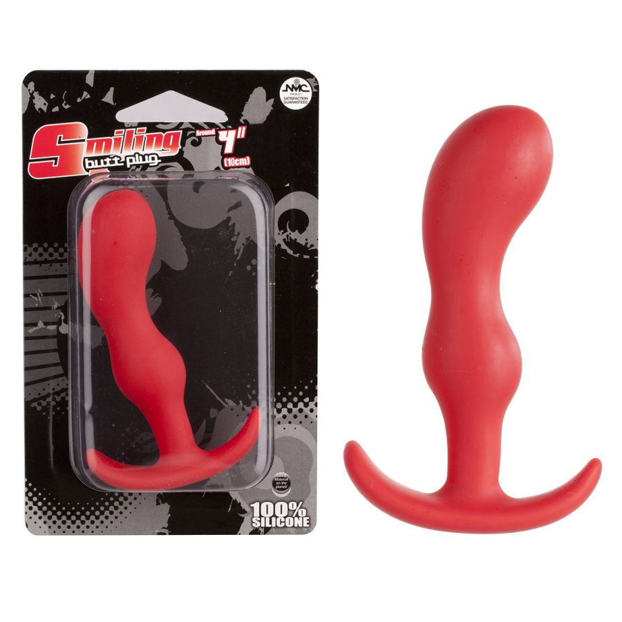 Красный мини-плаг из силикона для анальной стимуляции. Имеет изогнутую форму для удобного введения, функциональная длина 8,5 см, диаметр от 1 до 2,5 см.