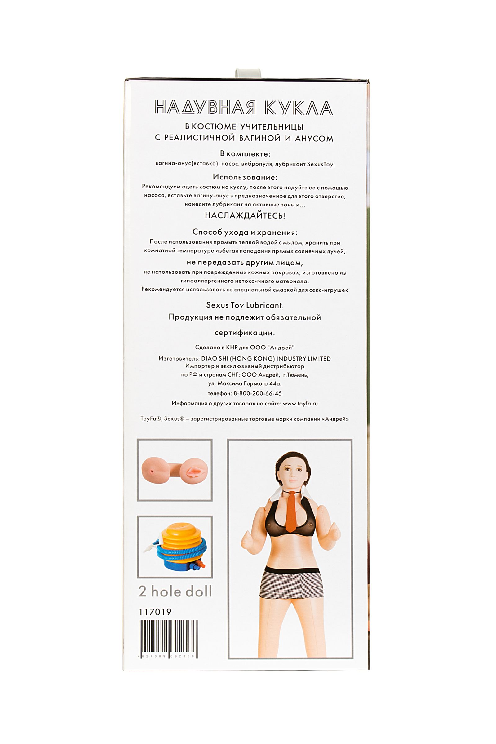 Заняться любовью со страстной училкой - одна из самых популярных сексуальных фантазий любого мужчины еще с выпускного класса. Теперь фантазию легко воплотить в реальность. С этой темноволосой возбужденной преподавательницей вы можете с увлечением проходить любые уроки интимного характера, и двойку на этот раз вам никто не поставит... С ней воплощать скрытые желания проще простого, ведь она создана для того, чтобы доводить до фееричного оргазма! Эта брюнетка обожает вагинальный и анальный секс, её интимные места выполнены из киберкожи — невероятно приятного на ощупь материала. Помимо этого, кукла имеет реалистичную голову, подвижные согнутые руки и большую упругую грудь. Пришло ваше время задавать домашнее задание! Рост 160 см.