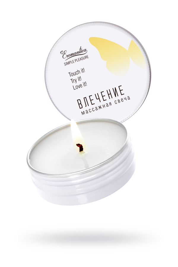 Коллекция косметики для массажа Eromantica Simple Pleasure — это натуральные массажные масла в удобном формате. С ними ты можешь создавать романтическую атмосферу и наслаждаться роскошным уходом в любом месте и в любое время. Массажная свеча Eromantica «Влечение» — релакс и уход в удобном формате. Как использовать: зажги свечу. Через 5-7 минут погаси ее и нанеси образовавшееся масло на тело легкими массажными движениями.