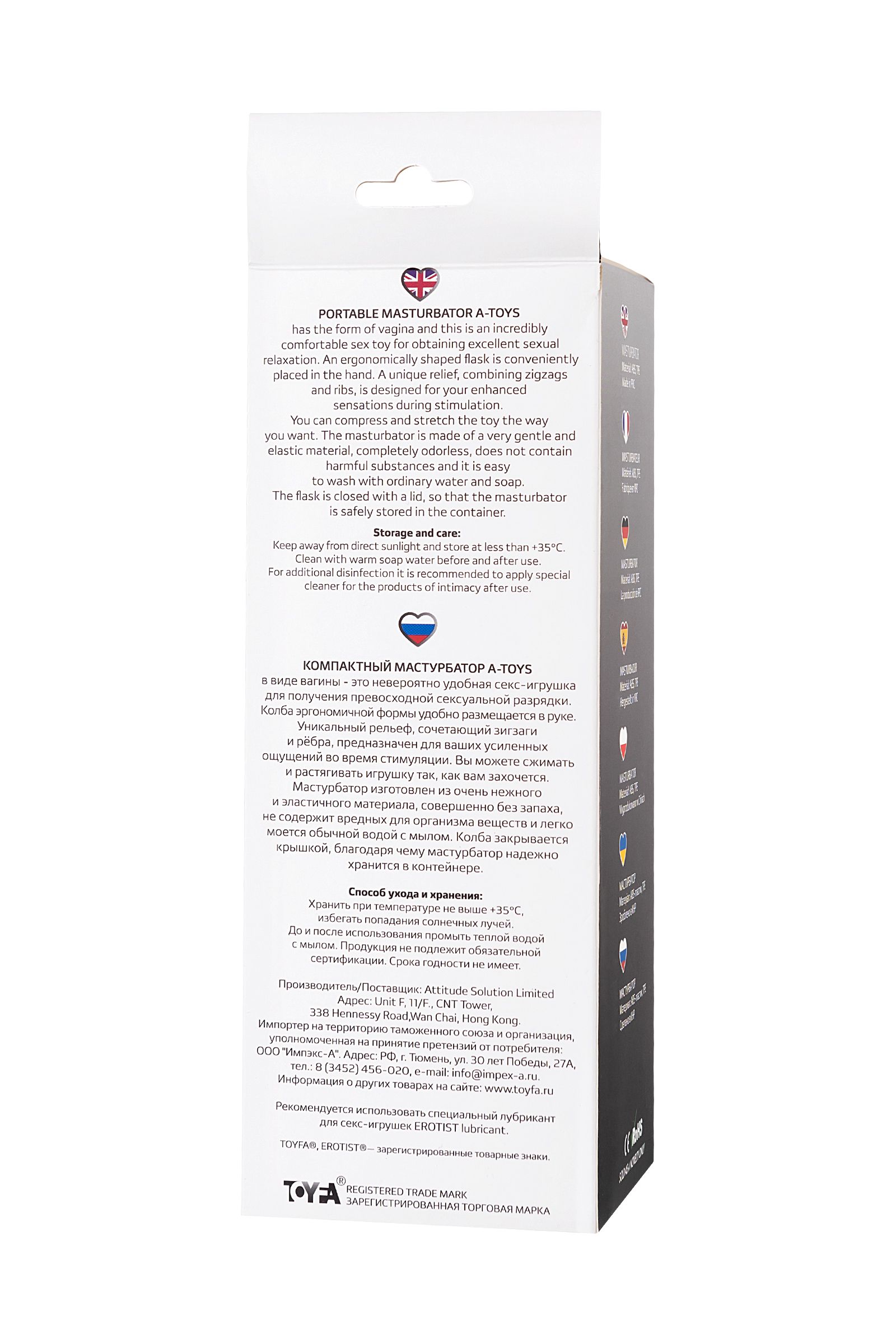 Компактный мастурбатор A-Toys в виде вагины — это невероятно удобная секс-игрушка для получения превосходной сексуальной разрядки. Колба эргономичной формы удобно размещается в руке. Уникальный рельеф, сочетающий зигзаги и рёбра, предназначен для ваших усиленных ощущений во время стимуляции. Вы можете сжимать и растягивать игрушку так, как вам захочется. Мастурбатор изготовлен из очень нежного и эластичного материала, совершенно без запаха, не содержит вредных для организма веществ и легко моется обычной водой с мылом. Колба закрывается крышкой, благодаря чему мастурбатор надёжно хранится в контейнере.
