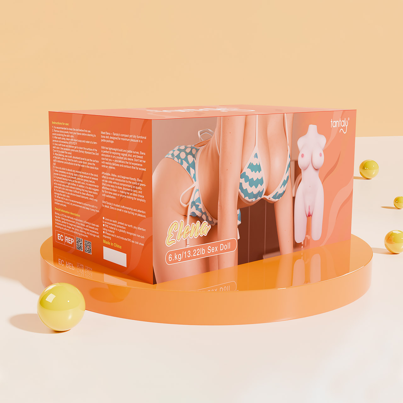 Tantaly Elena &mdash это компактный, но полностью функциональный торс-кукла, созданный для тех, кто хочет максимального удовольствия в удобной и управляемой форме. Её лёгкий вес (6 кг) и пропорциональные изгибы делают её идеальной для вагинальной, анальной и стимуляции груди в любых позициях.