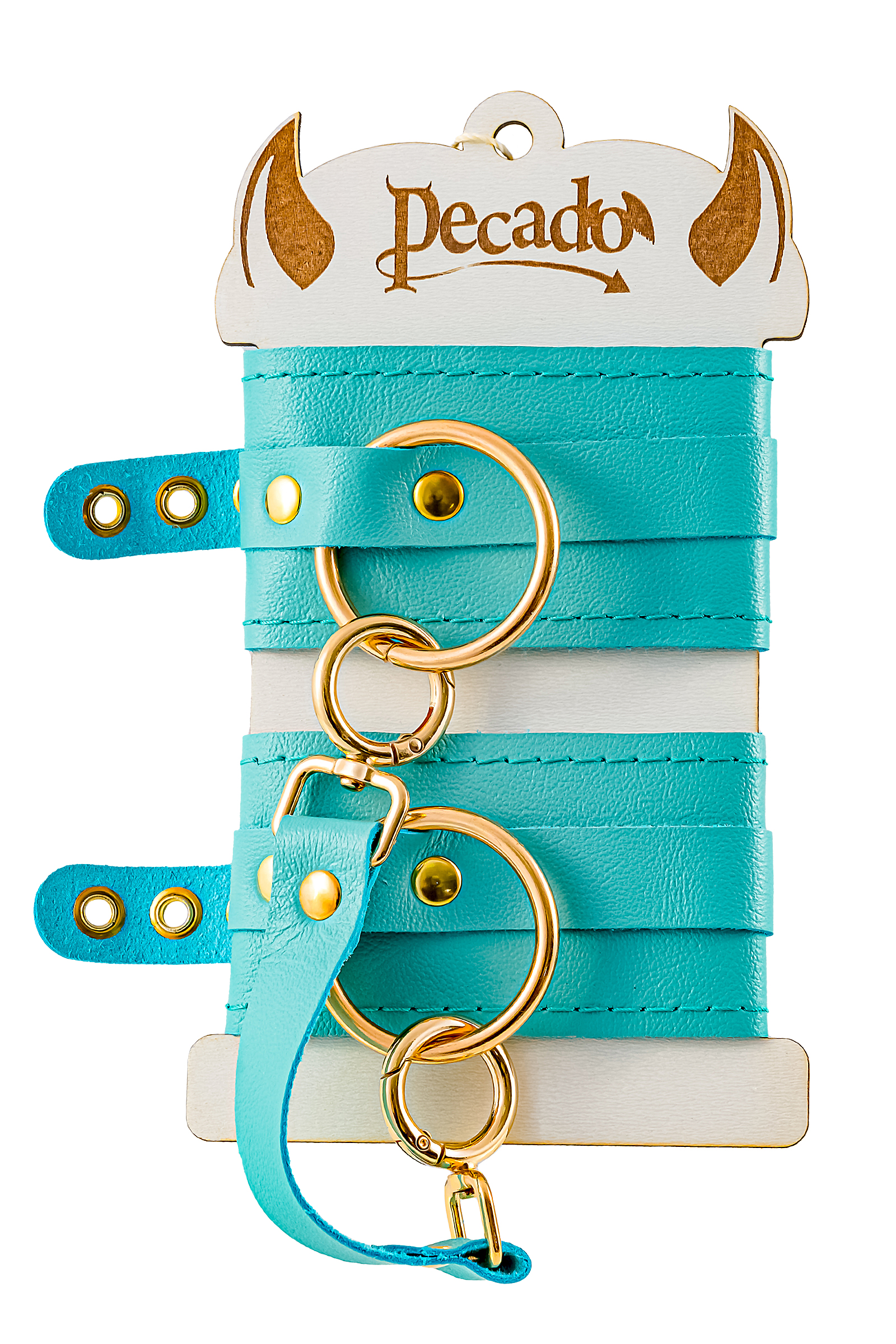 Готовы играть по-взрослому Не бойтесь своих желаний! Основатели бренда уверены: лучший способ избавиться от искушения - поддаться ему!Добавьте пикантную деталь в ролевую игру и воплотите самую смелую сексуальную фантазию в реальность!Эти однослойные кожаные голубые (бирюзовые) оковы со строчкой в тон кожи могут стать стильным аксессуаром, а могут послужить вашим целям по своему прямому назначению. Частичное обездвиживание и невозможность двигать руками или ногами дают вам полную власть над партнером – взрослые игры для взрослых. Наличие двух колец и карабинов, соединенных между собой кожаным ремешком, позволяет использовать изделие как раздельно – аксессуар-манжеты, так и как оковы для фиксации. К широким металлическим кольцам также можно присоединить и другие аксессуары при помощи карабинов. Благодаря универсальному размеру оковы могут использоваться и мужчинами, и женщинами. Размер легко регулируется с помощью металлических пряжек, органично вписывающихся в общий стиль. Pecado BDSM – российский бренд, использующий высококачественные материалы и надежную, проверенную временем фурнитуру. Все изделия изготавливаются вручную из натуральной кожи, безопасный и экологичный материал не оставляет повреждений на запястьях. Натуральная кожа, металлические крепления и ремешки дают уверенность в надежной фиксации, устойчивости к механическим нагрузкам и долговременном использовании. Ширина манжет - 6,5 см.Длина манжет - 25 см.Длина сцепки - 17 см.
