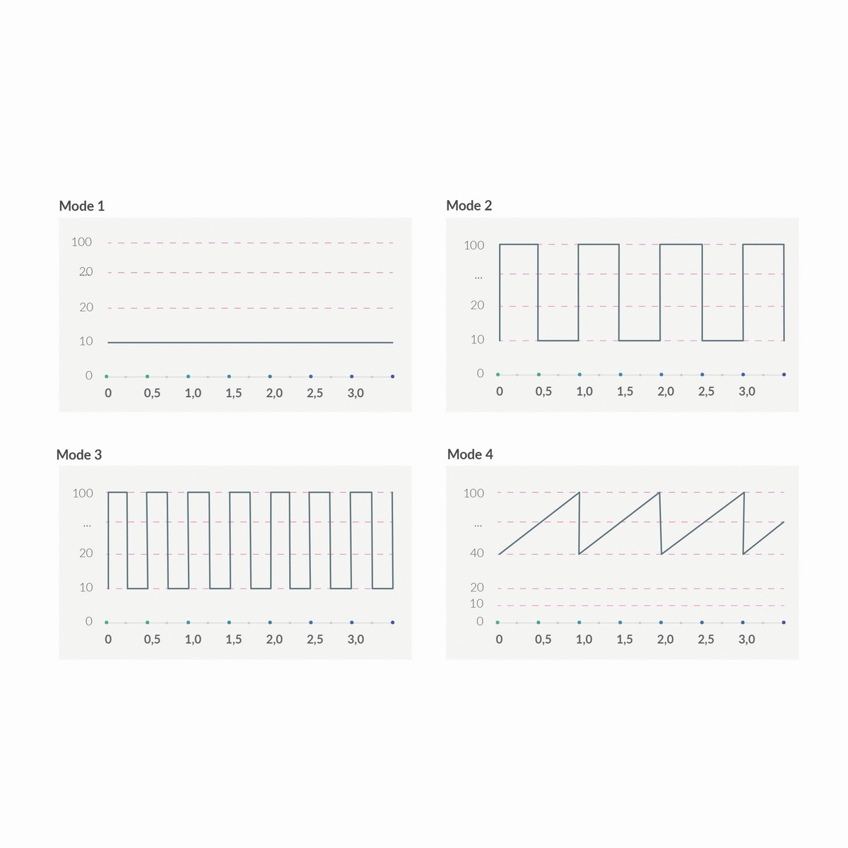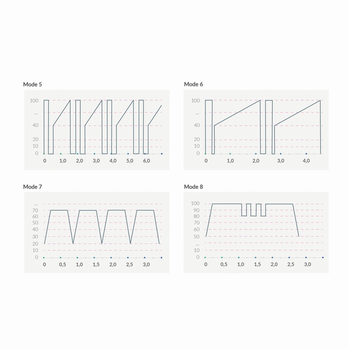 В вашем распоряжении 8 программ вибрации, 5 программ миостимуляции с 10 уровнями интенсивности, а также 1 программа для тренировки МТД.