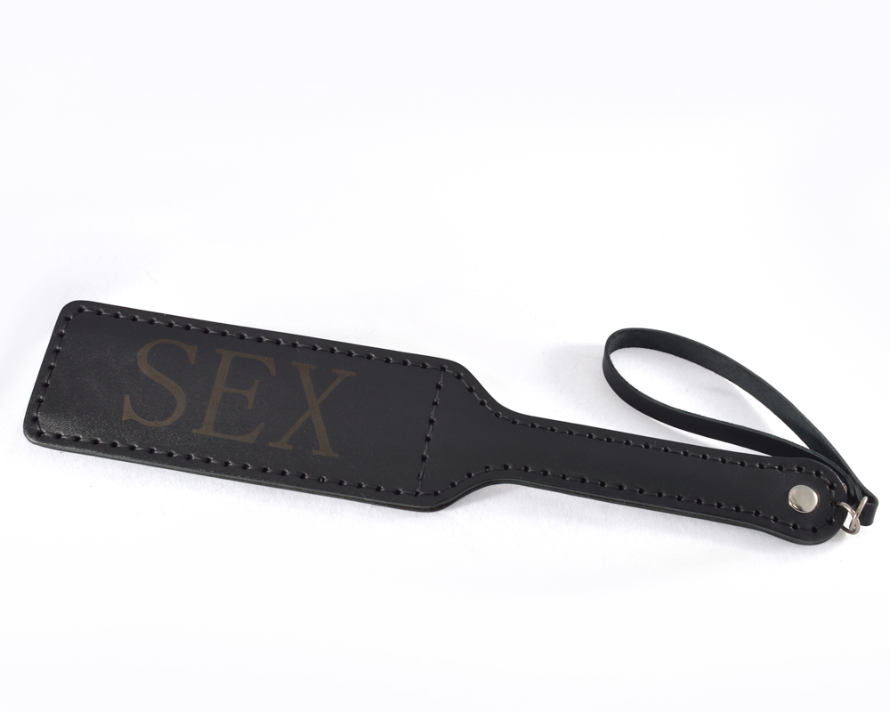 Шлепалка изготовленна из натуральной толстой кожи. На рукояти располагается кожаный ремешок для удобства хранения.   Общая длина около 35 см, Ширина 7 см, Длина рукояти 8 см