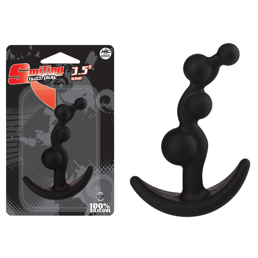 Силиконовый стимулятор черного цвета из 4 шариков разного диаметра и большим ограничительным основанием. Функциональная длина 8 см, диаметр от 1 до 2,5 см.