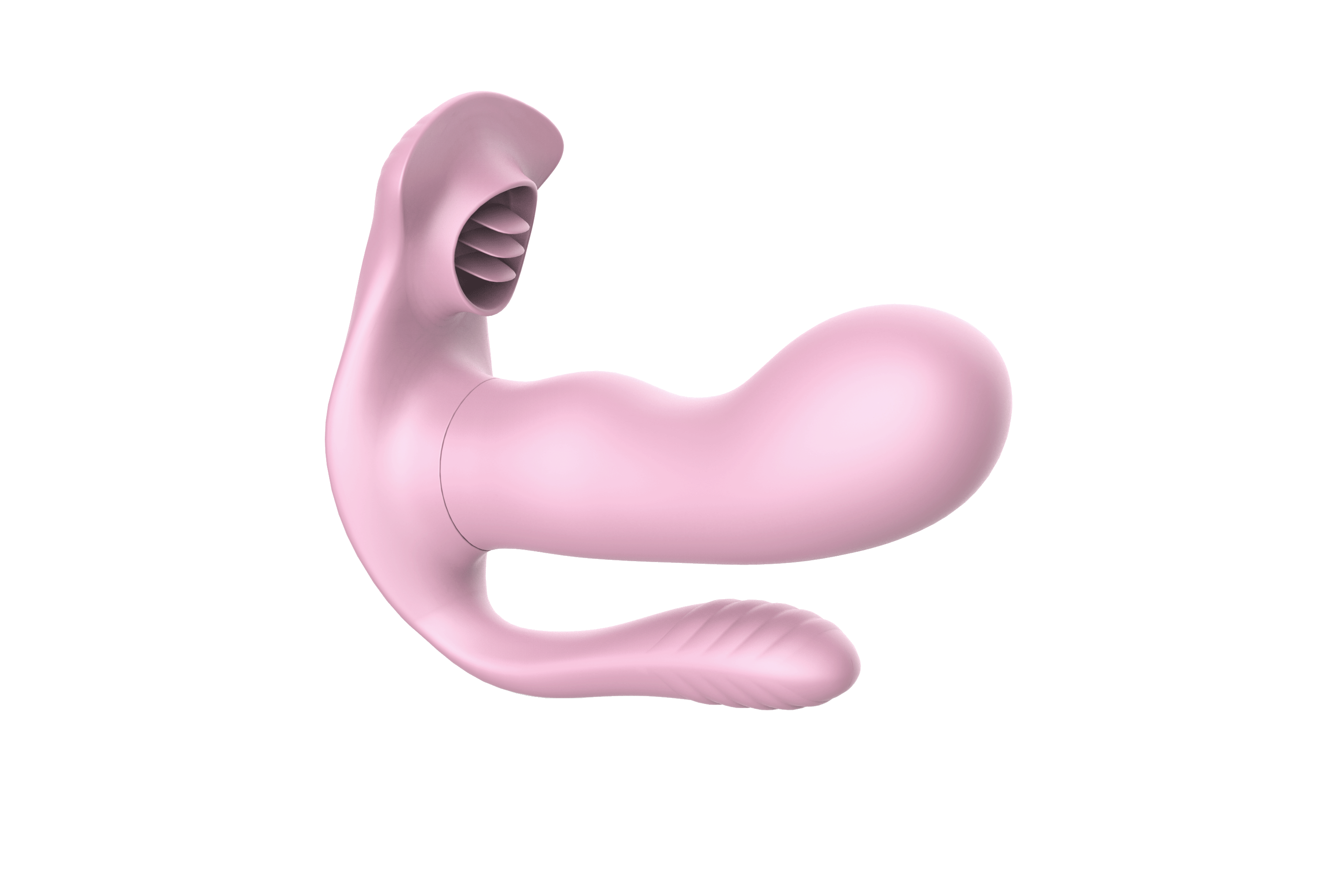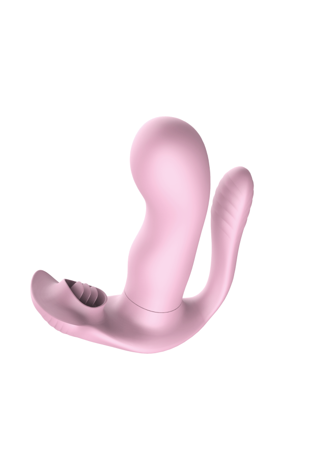 Многофункциональный вагинально-анально-клиторальный стимулятор сочетает в себе эргономичный дизайн и продуманную функциональность. Вагинальная и анальная части оснащены вибрацией с 9 режимами, которые переключаются с помощью дистанционного пульта. Клиторальная часть выполнена в виде трех гибких лепестков, обеспечивающих механическую стимуляцию. Игрушкой можно управлять как при помощи кнопок на ее поверхности, так и при помощи пульта. Длина вагинальной части: 10,5 см. Диаметр вагинальной части: 4 см. Длина анальной части: 7 см. Диаметр анальной части: 2,3 см. Длина клиторальной части: 4,5 см. Дистанция управления пультом: 10–15 м. Перезаряжается от USB. Время работы: до 60 минут. Время зарядки: 90 минут. Девайс водонепроницаемый и идеально подходит для использования в душе или ванной.