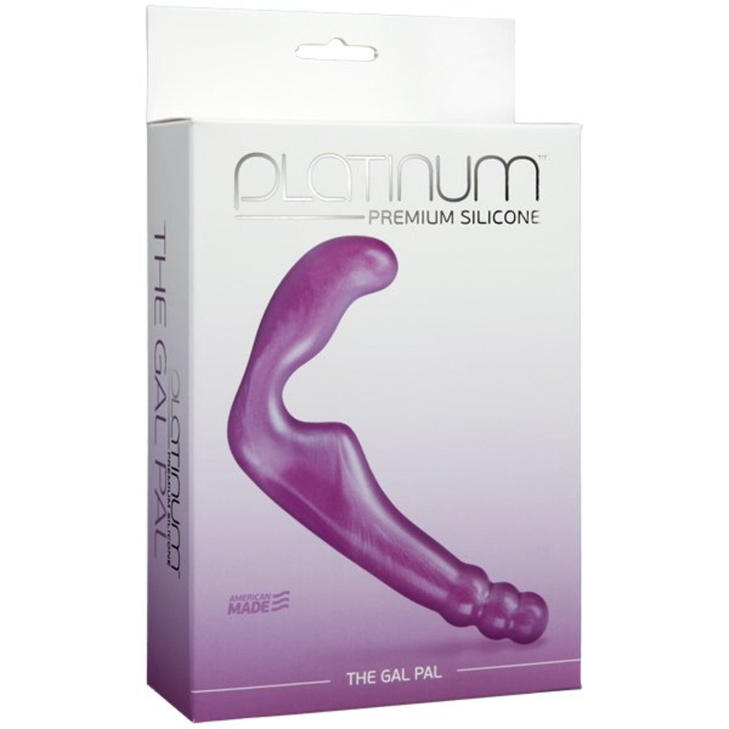 Безремневой страпон из платинум силикона без запаха фиолетового цвета. Короткая часть предназначена для стимуляции точки G, выступ на длинной части - для массажа клитора.