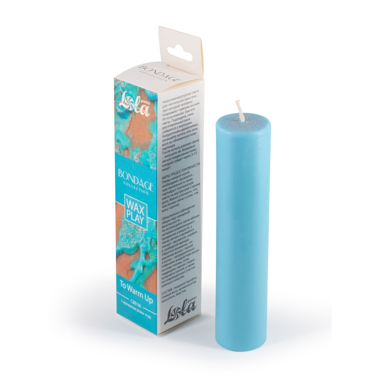 Низкотемпературная свеча для тактильной практики, при которой человека покрывают горячим воском. Использование: зажгите свечу. Подождите, пока расплавленный воск соберется у верхушки. Аккуратными движениями начинайте капать или лить воск на обнаженную кожу партнера. После использования свечи - потушите ее. Возможно легкое покраснение кожи, которое сойдет через 5-15 минут.   МЕРЫ ПРЕДОСТОРОЖНОСТИ: перед каждой игрой необходимо проверять чувствительность кожи партнера к температуре свечи на внутренней стороне руки. Важно учитывать, что, чем ближе свеча к коже, тем воск горячее.   СОСТАВ: пищевой парафин, соевый воск, ароматизатор, краситель, блестки.  ТЕМПЕРАТУРА ГОРЕНИЯ: 45-50 градусов.