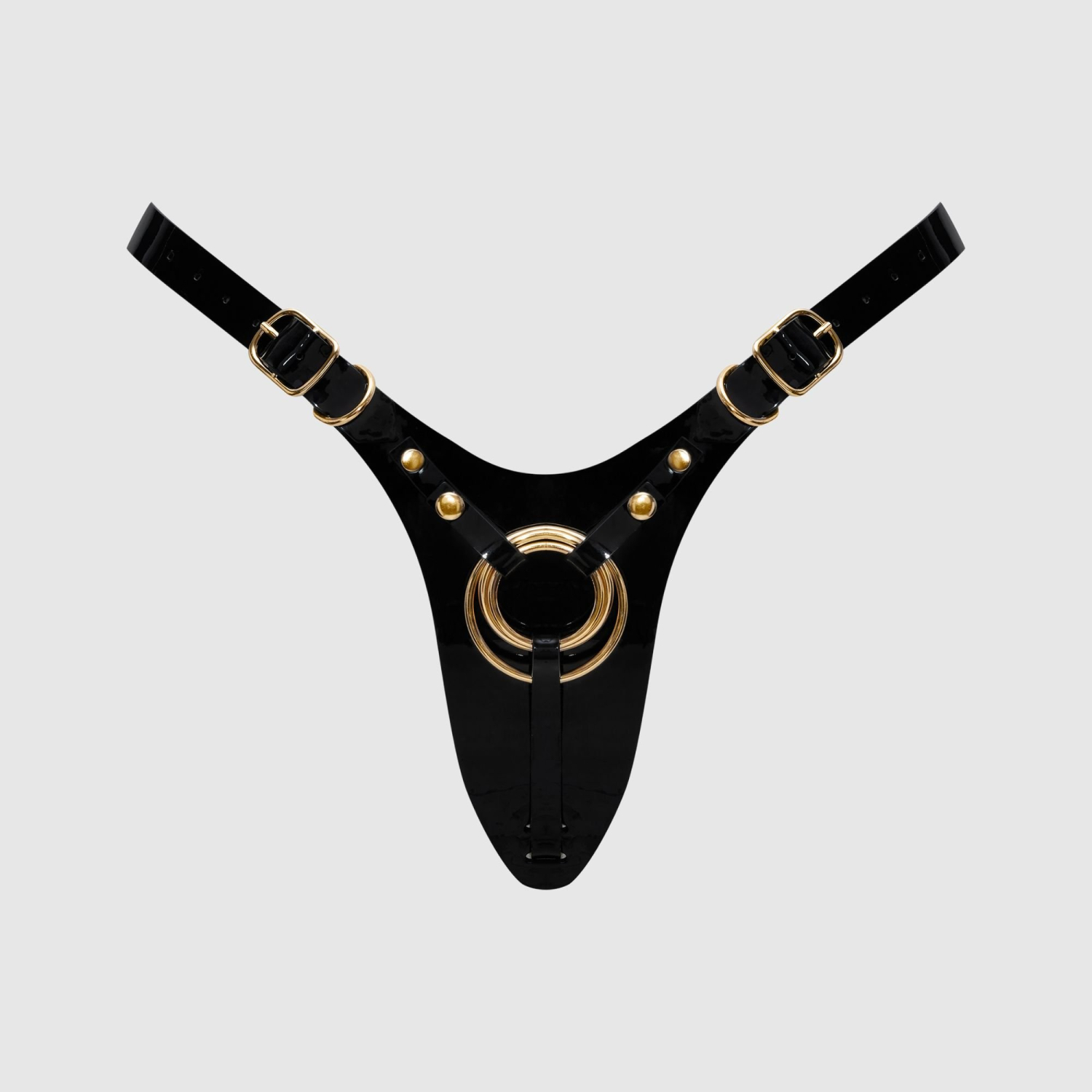 Каждая деталь тщательно продумана, чтобы сделать Strap-on-me HARNAIS SIMILI FABULOUS коллекционной вещью: минималистичный дизайн спинки-стринга деликатно подчеркивает ягодицы, а глянцевая лакированная отделка придает ему безупречный вид высокой моды. Регулируемые лямки на бедрах обеспечивают индивидуальную посадку и полную свободу движений. Спереди расположены три сменных металлических кольца для надежного крепления любого дилдо по вашему выбору.