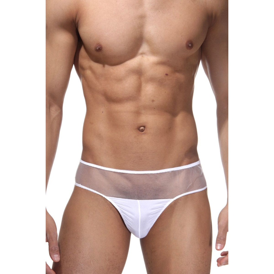 Белые мужские трусы с прозрачной вставкой на поясе. Выпонены из мягкой ткани, поэтому не будут доставлять никакого дискомфорта при использовании.