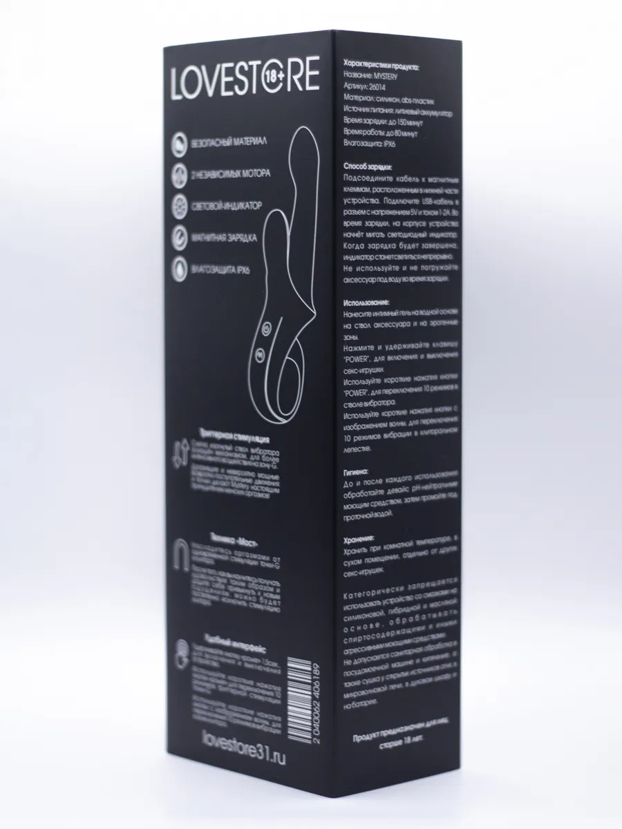Стильная упаковка с мягким ложементом внутри и вальцовкой снаружи. Магнитная зарядка, IPX6. Кролик с двумя независимыми друг от друга моторами. Специально разработанная инновационная форма вагинальной части вибратора идеально подходит для зоны g, а мощный пульсирующий мотор заставляет двигаться ствол, совершая интенсивные колебания внутри. Инструкция на русском языке на упаковке. Общая длина - 22,5 см, рабочая длина - 12,5 см, длина клиторального лепестка - 5 см.
