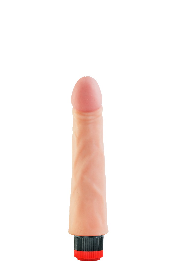 Вибратор-реалистик телесного цвета. Имеет форму члена с ярко-выраженной головкой, рельефный, выполненный из материала неоскин, не имеет швов. Скорость вибрации регулируется кнопкой у основания изделия. Характеристика: работает от 2АА батареек (нет в комплекте), общая длина – 24 см, рабочая длина- 20 см, максимальный диаметр- 5 см, без запаха, упакован в пленку.