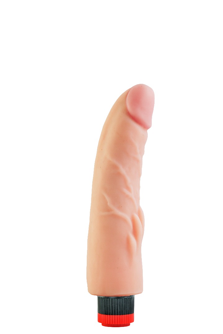 Вибратор-реалистик телесного цвета. Имеет форму члена с ярко-выраженной головкой, рельефный, выполненный из материала неоскин, не имеет швов. Скорость вибрации регулируется кнопкой у основания изделия. Характеристика: работает от 2АА батареек (нет в комплекте), общая длина – 25 см, рабочая длина- 22 см, максимальный диаметр- 5,5 см, без запаха, упакован в пленку.