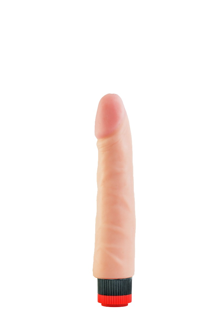 Вибратор-реалистик телесного цвета. Имеет форму члена с ярко-выраженной головкой, рельефный, выполненный из материала неоскин, не имеет швов. Скорость вибрации регулируется кнопкой у основания изделия. Общая длина – 21,5 см, максимальный диаметр -4,3 см,без запаха, упакован в пленку