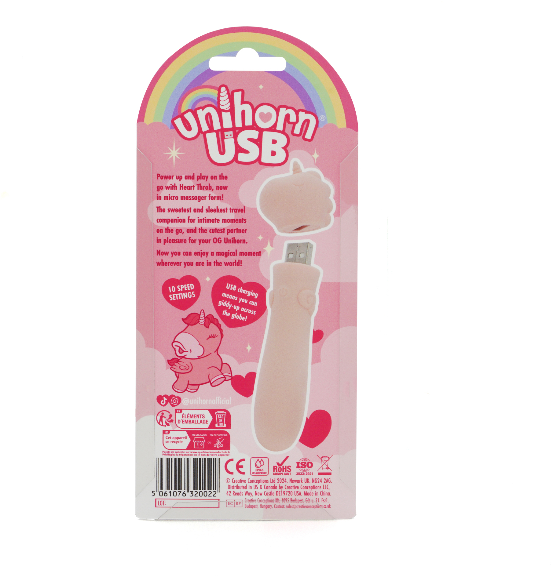 Откройте для себя свою настоящую любовь с помощью Heart Throb Unihorn USB, в котором гармонично сочетаются причудливое очарование и мощная производительность! Эта очаровательная вибропуля в виде единорога - ваш сказочный спутник для ненавязчивого удовлетворения в дороге. Его шелковистый, безопасный для тела силикон и 10 очаровательных скоростных режимов доставят вам незабываемые ощущения, куда бы вы ни отправились в своих приключениях.