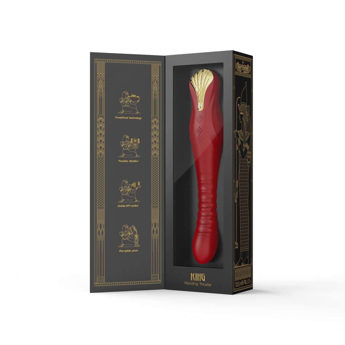 Если ты ищешь не просто удовольствие, а власть над ним &mdash встречай Zalo King. Этот вибратор не просто игрушка, а символ силы, завоевания и древней магии, вдохновлённый золотой маской египетского фараона. Каждая деталь King &mdash от алмазного рисунка на головке до украшения из кристаллов Swarovski &mdash рассказывает историю о мощи, страсти и неудержимом желании.