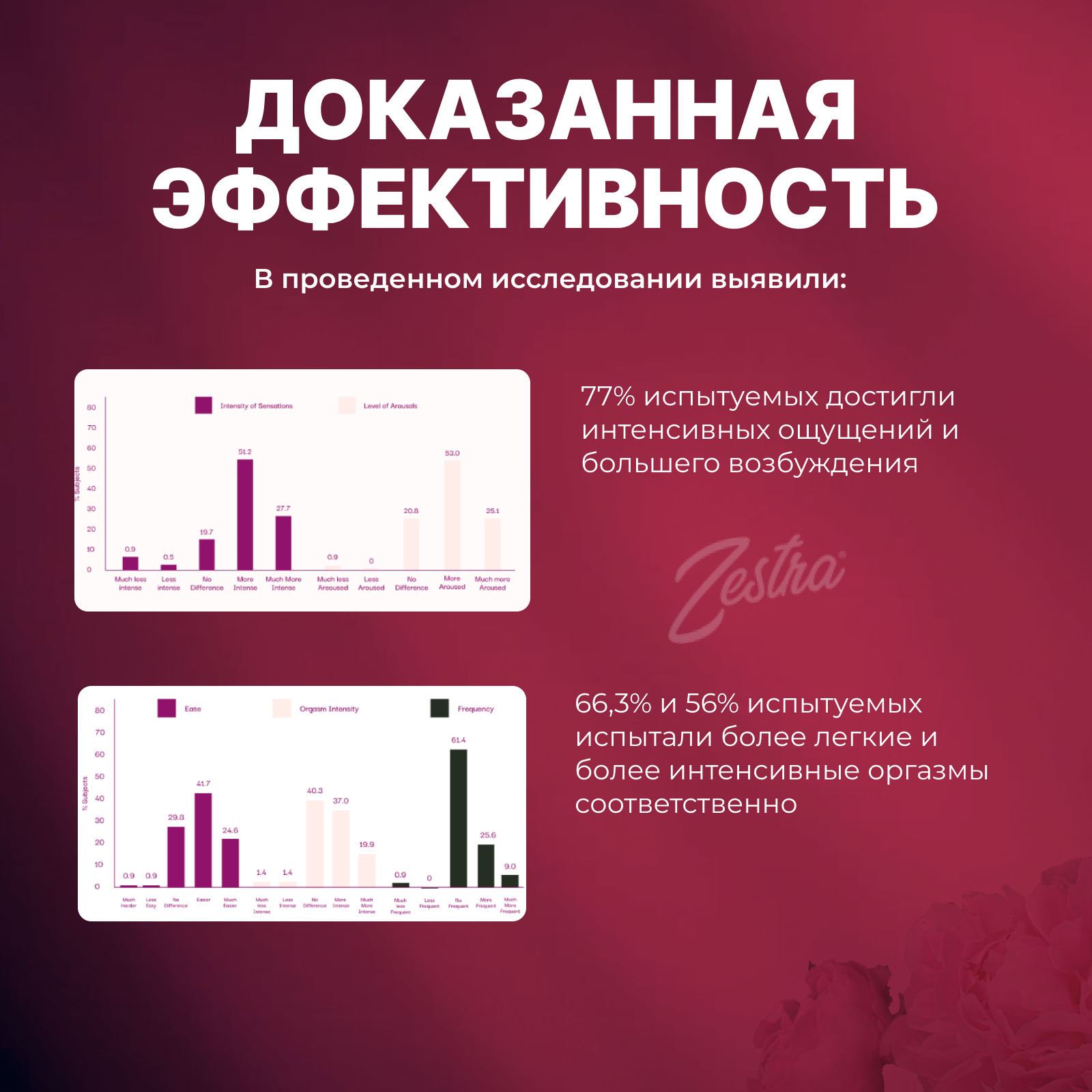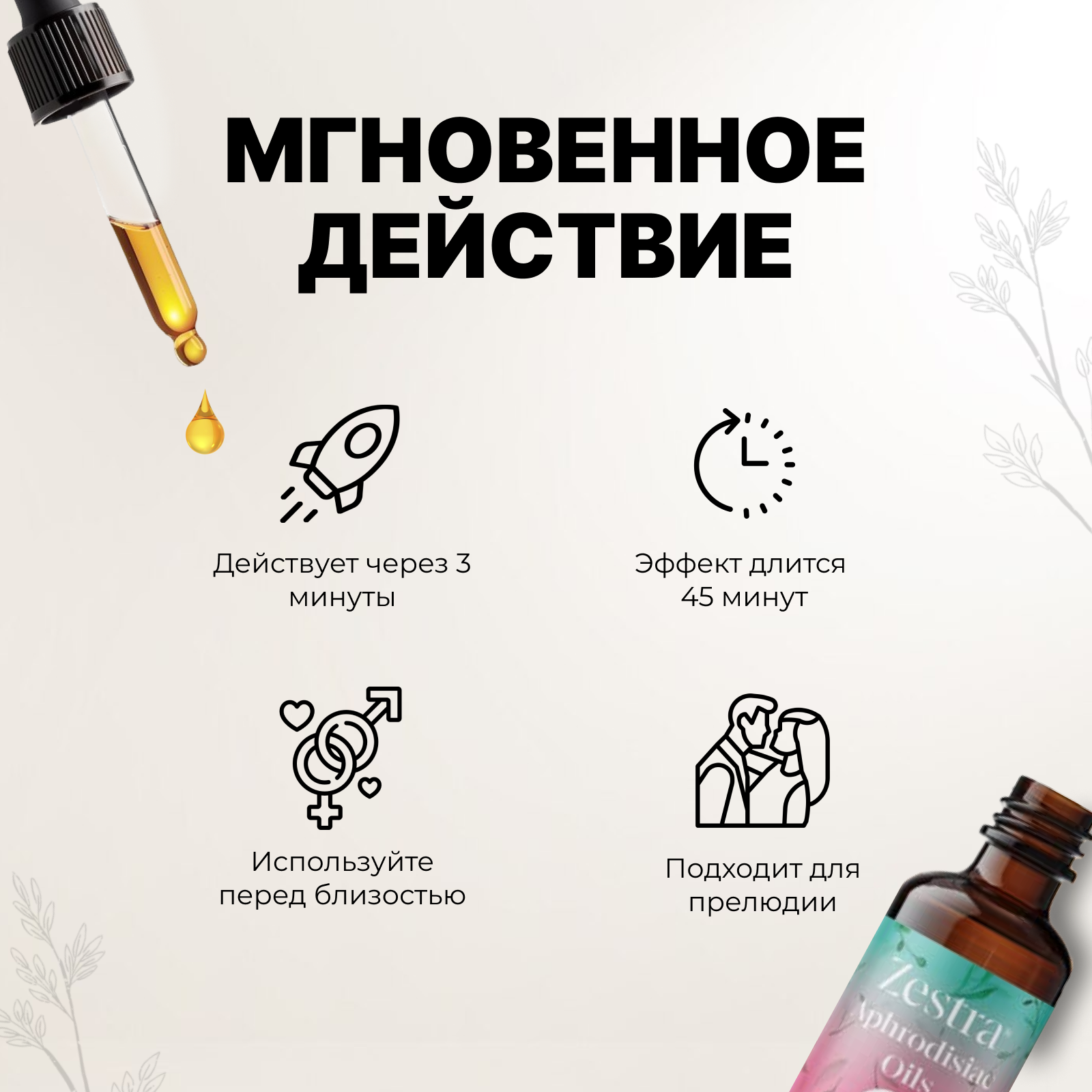 Соблазнительная формула возбуждающего масла от Zestra приятна не только для поцелуев, но и для интимной зоны. Нанесите масло на клитор до или во время прелюдий, чтобы усилить эффект от прикосновений. Через 3-5 минут после этого вы испытаете приятное покалывание и тепло. Согревающий эффект обычно достигает максимума через 10 минут и длится до 45 минут. Попробуйте новое в оральных ласках. Zestra безвредна при приеме внутрь т.к. ингредиенты средства получены из натуральных растительных компонентов, которые используют в пищевых добавках.  Если вы используете дополнительную смазку во время близости, то сначала нанесите Zestra, подождите 5 минут, чтобы масло начало действовать, а затем добавьте лубрикант.Этот продукт на масляной основе поэтому безвреден для силиконовых секс-игрушек. Меры предосторожности: •    не используйте с латексными презервативами•    не применяйте при беременности •    не наносите при заболеваниях половых органов•    при неприятных ощущениях смойте водой с мылом. Объем 15 мл.